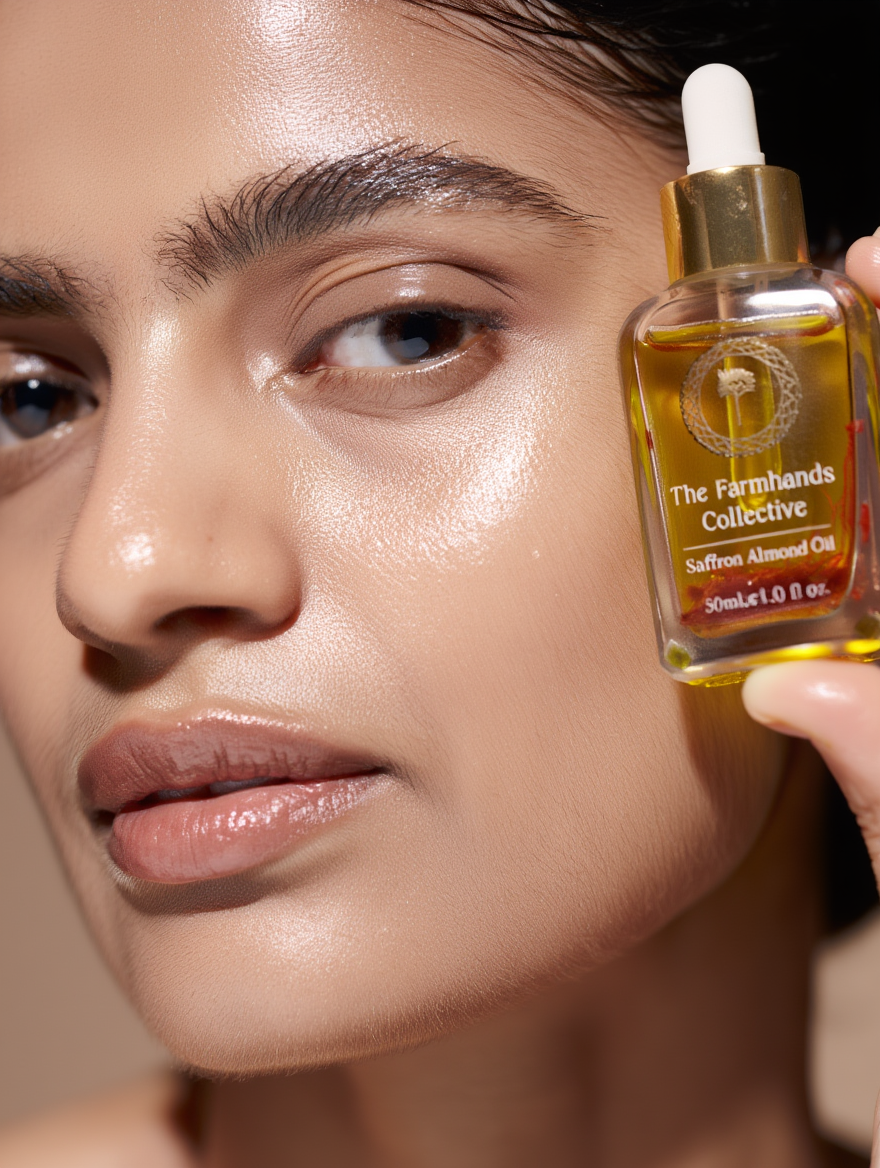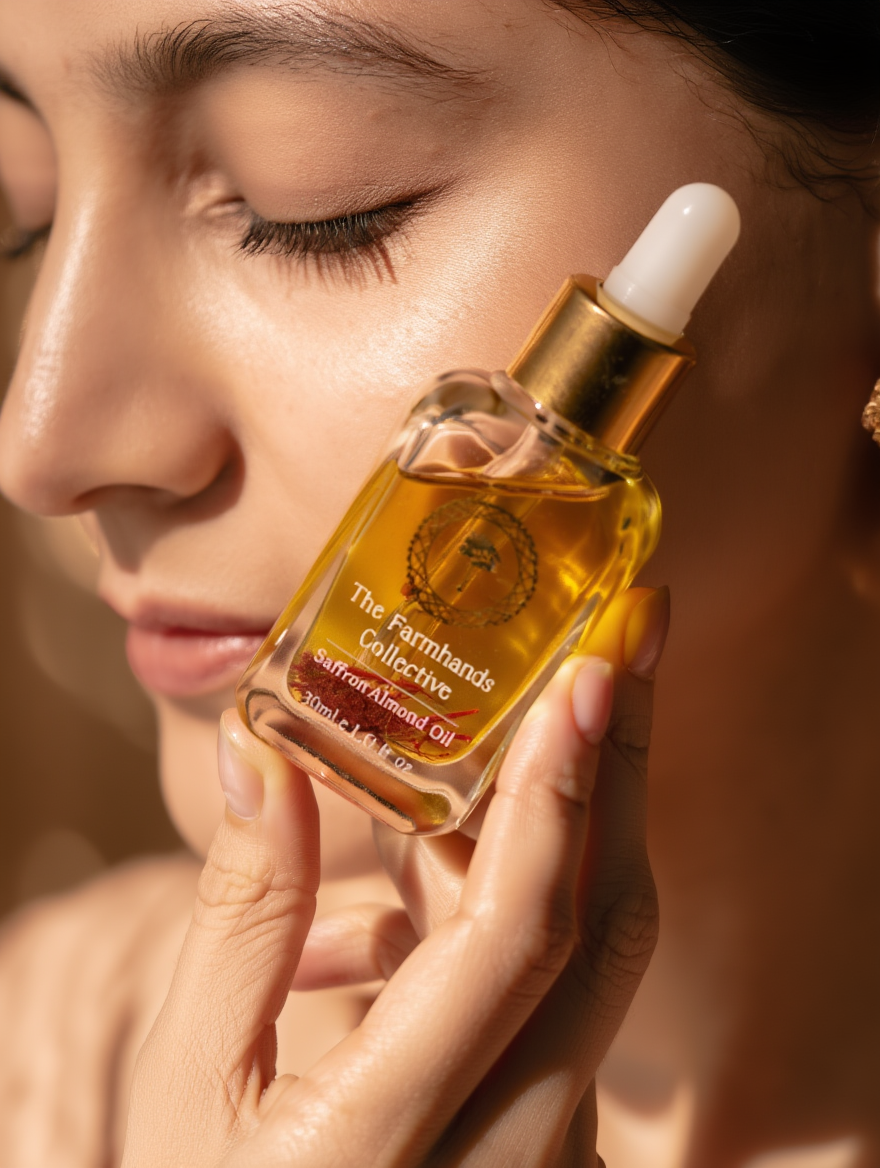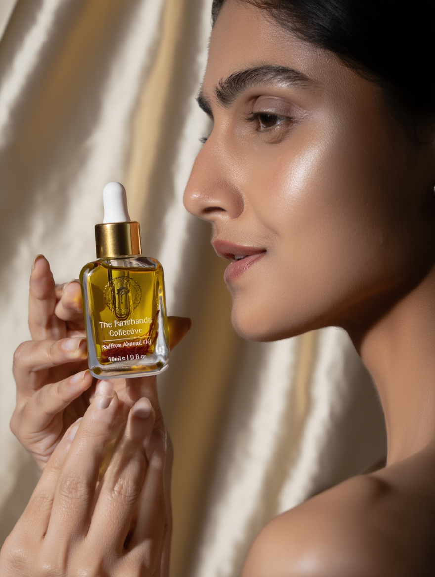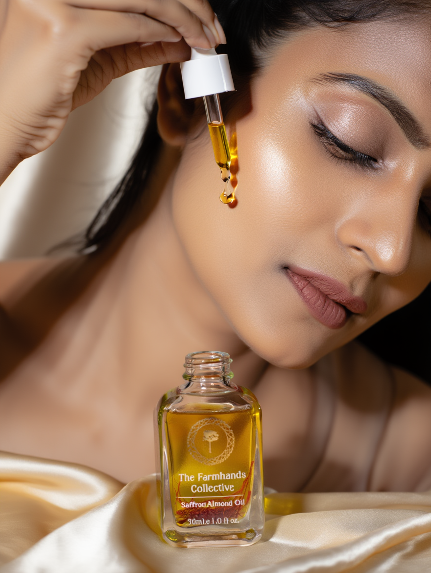 Discover the value of saffron almond oil, mindfully curated to nurture and revive your skin. Here's what makes this skincare unique: